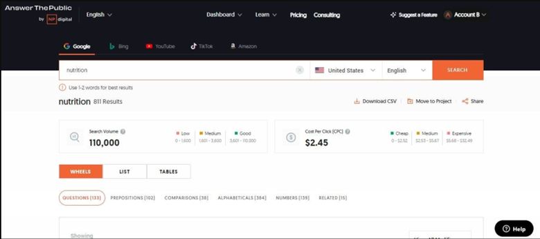 AnswerThePublic is one of the most effective free SEO tools for keyword research and generating content ideas, designed to assist marketers and content creators in grasping the online search behaviors of their audience. Below is a summary of its features, functionalities, and advantages.