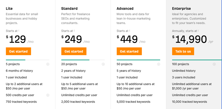 Ahrefs is one of the renowned SEO ranking tools for its exceptional data quality, making it one of the top tools available for monitoring backlinks and conducting keyword research. It also provides insights into competitors’ SEO strategies. While Ahrefs serves as an extensive database for those with specific queries, it does not offer guidance for users unfamiliar with SEO practices. To fully leverage its capabilities, a certain level of expertise is required. For knowledgeable users, Ahrefs stands out as one of the premier SEO tools in the industry.